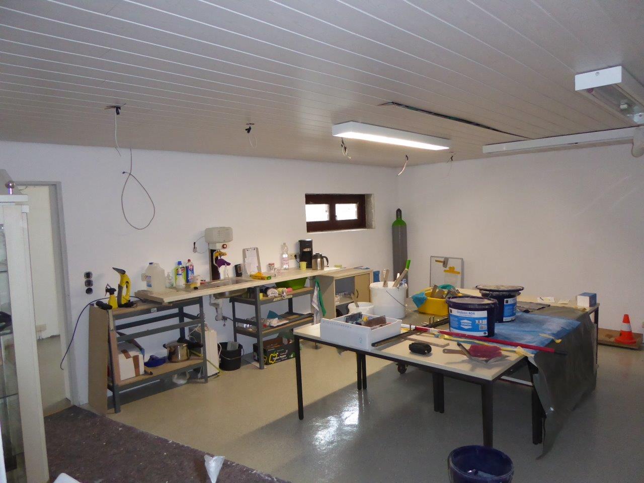- Die Zwischenwände in den Materialräumen sind fertiggestellt und fast alle auch gestrichen